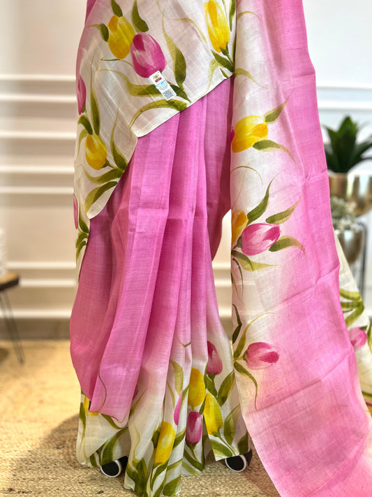 Tulip Fields | Handpainted Silk Saree