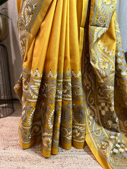Sunehri Dhoop | Kantha Stitch Saree