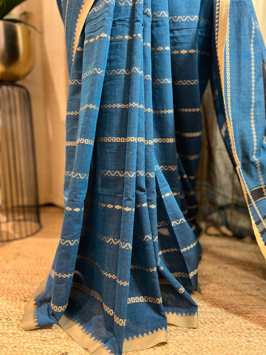 Temple Blues | Tussar Silk Saree