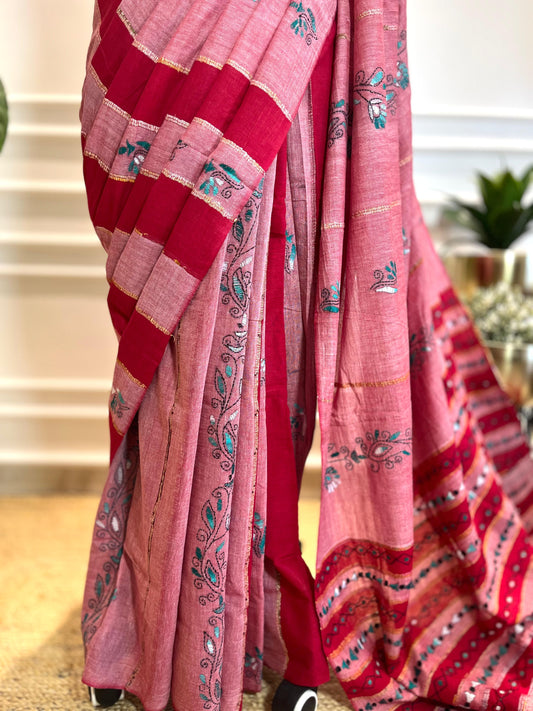 Sold outLaal Lakeerein | Kantha Stitch Saree