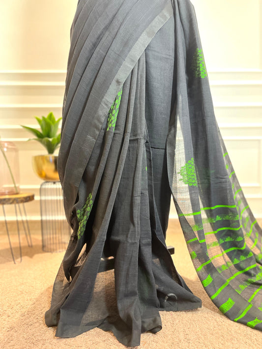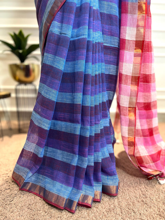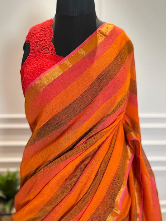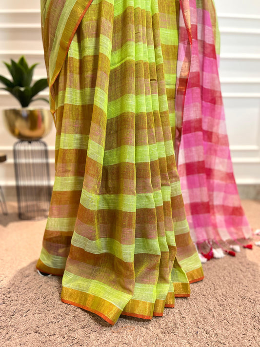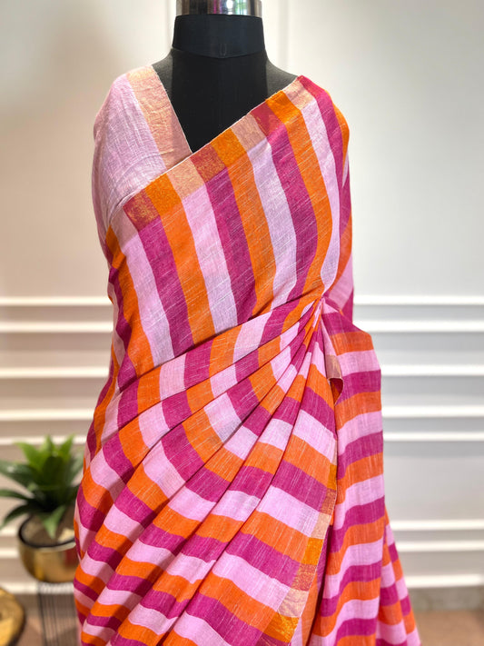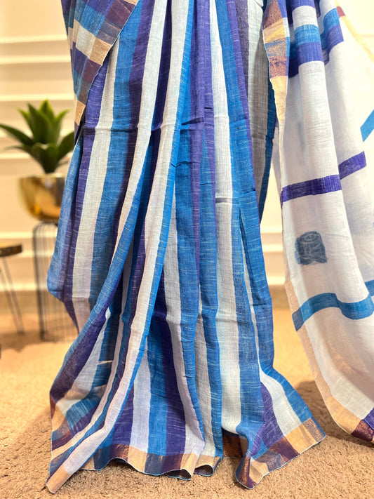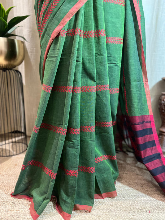 Leafy Stripes | Handblock Printed Maheshwari Silk Saree