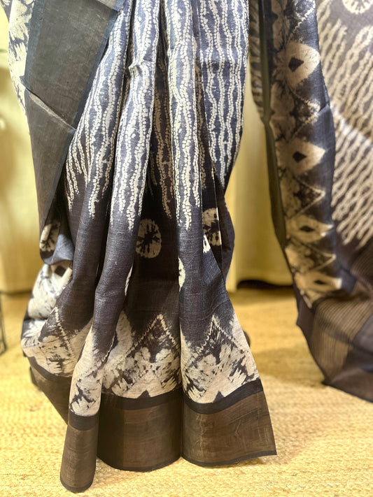 Shiboried | Blockprinted Tussar Silk Saree