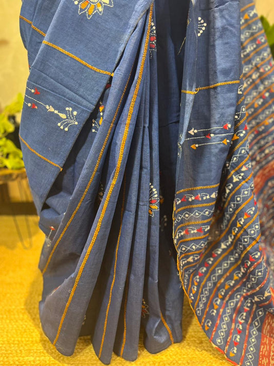 Neeli Dhar | Cotton Kantha Stitch Saree
