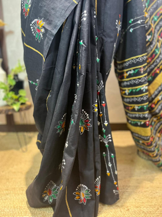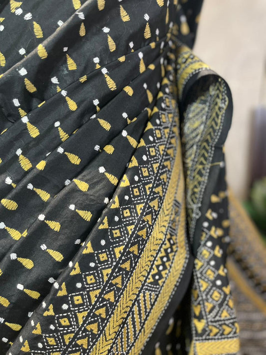 Kaala Teeka | Silk Kantha Stitch Saree