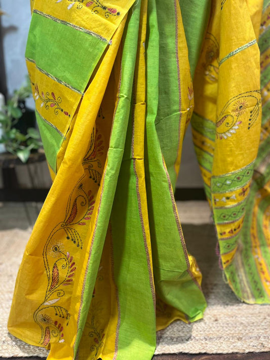 Hariyali | Cotton Kantha Stitch Saree