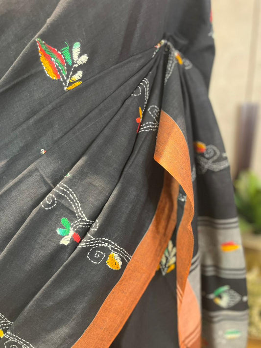 Kaccha Pakka | Cotton Kantha Stitch Saree