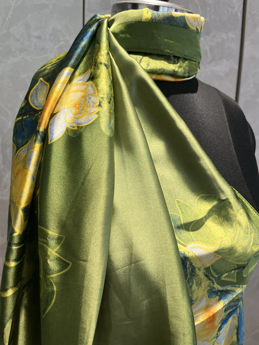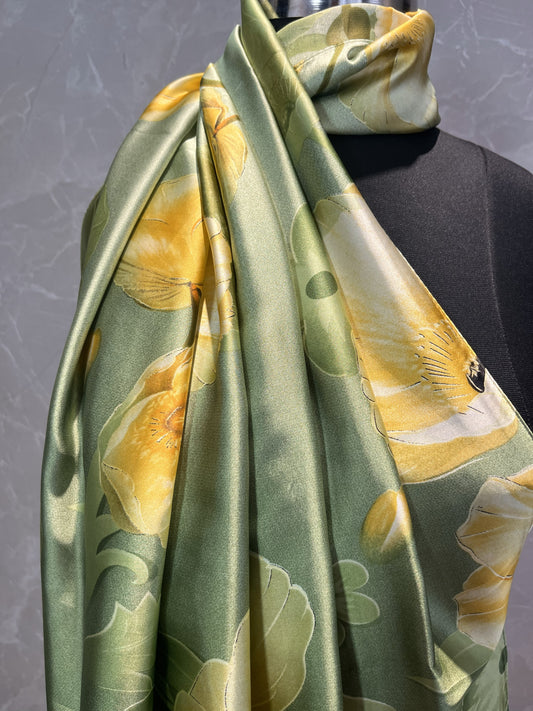 Green Lotuses | Silk Scarf