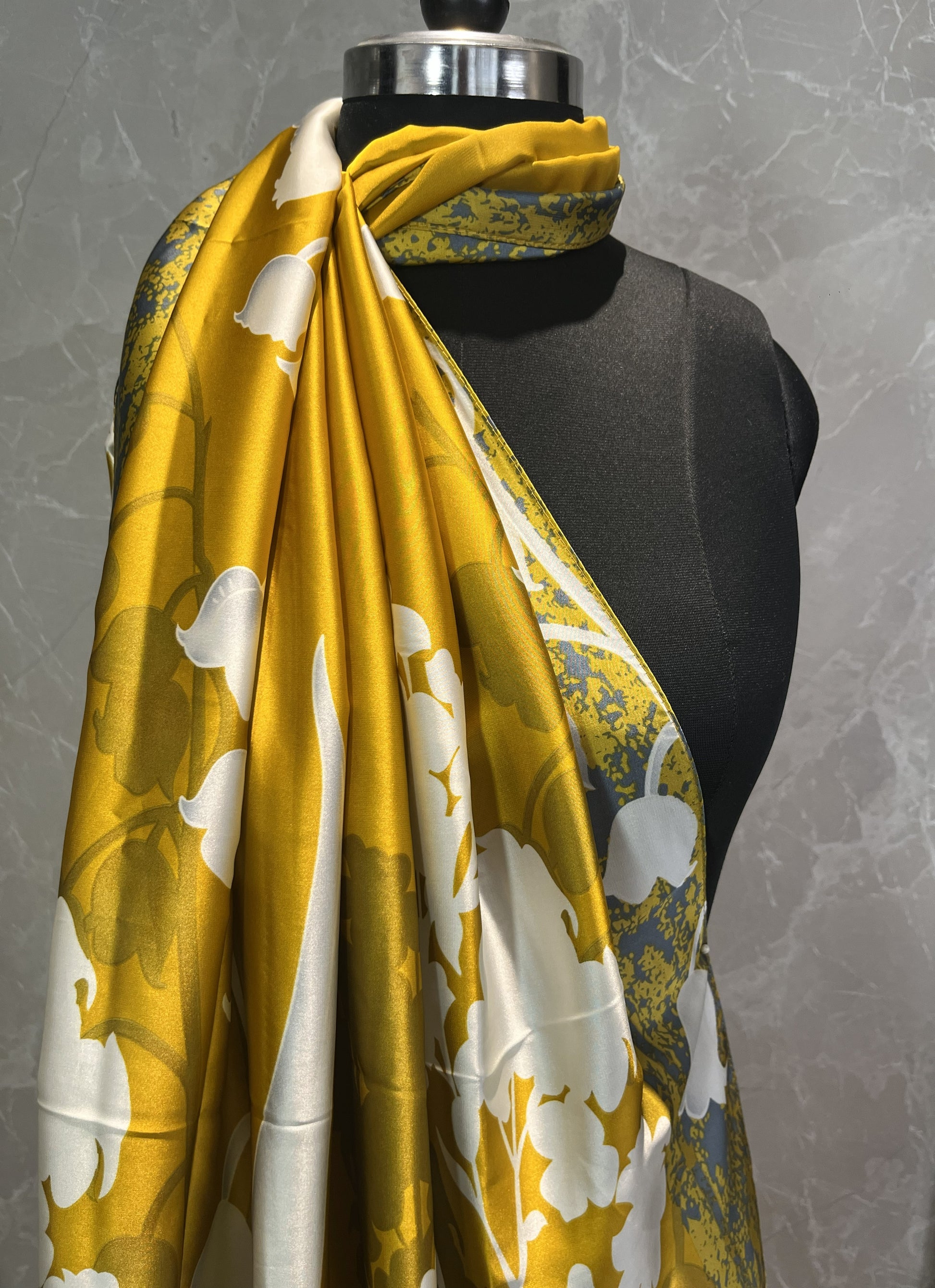 Meet your new styling essential - a printed silk blend scarf that whispers luxury with every drape. Satin-soft against your skin, it's the chameleon piece your closet has been waiting for. Pair it with indo-western fusion looks, ethereal boho dresses, sharp western tailoring, or sophisticated Indian formals. Effortlessly chic, undeniably luxe, infinitely versatile.