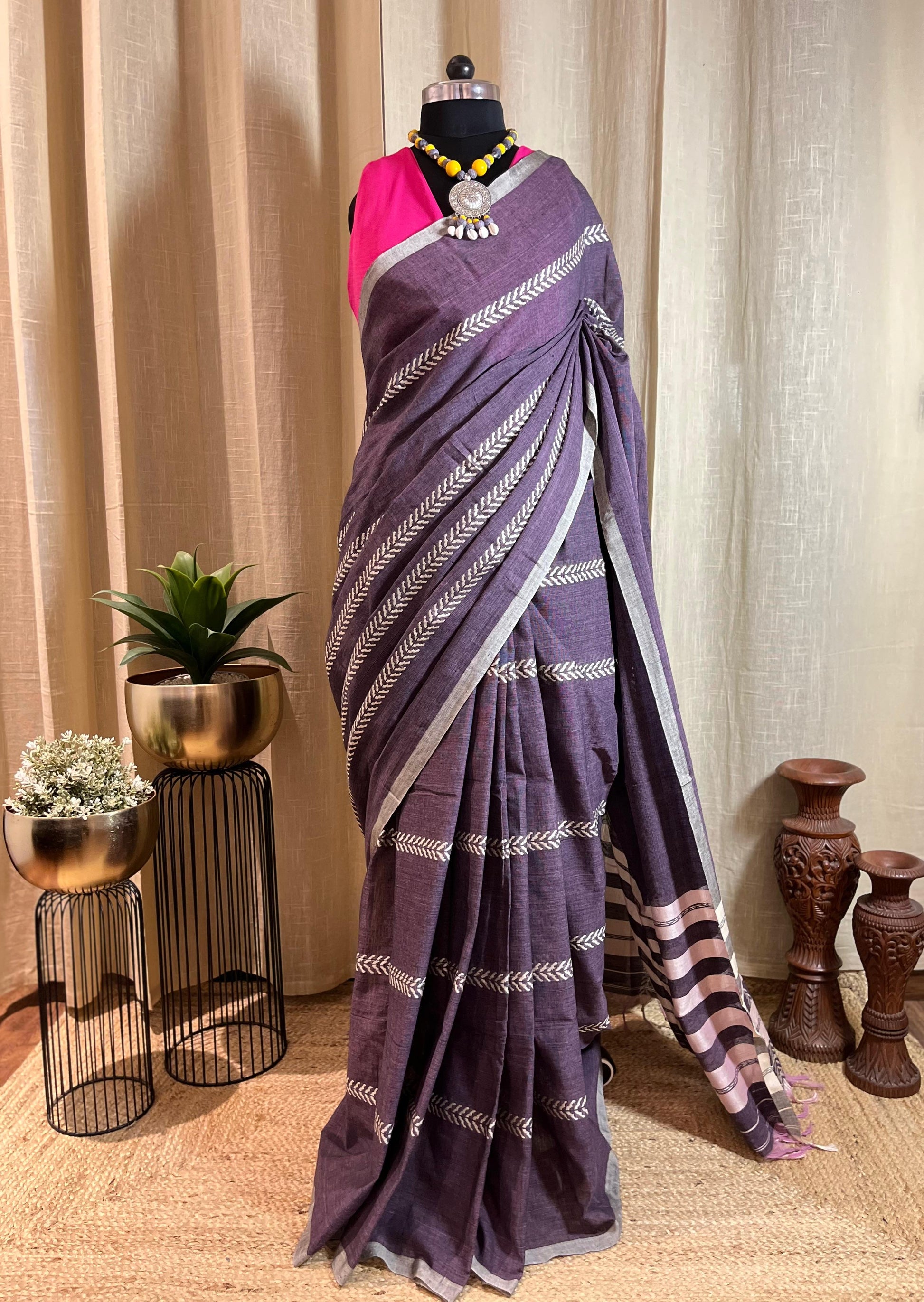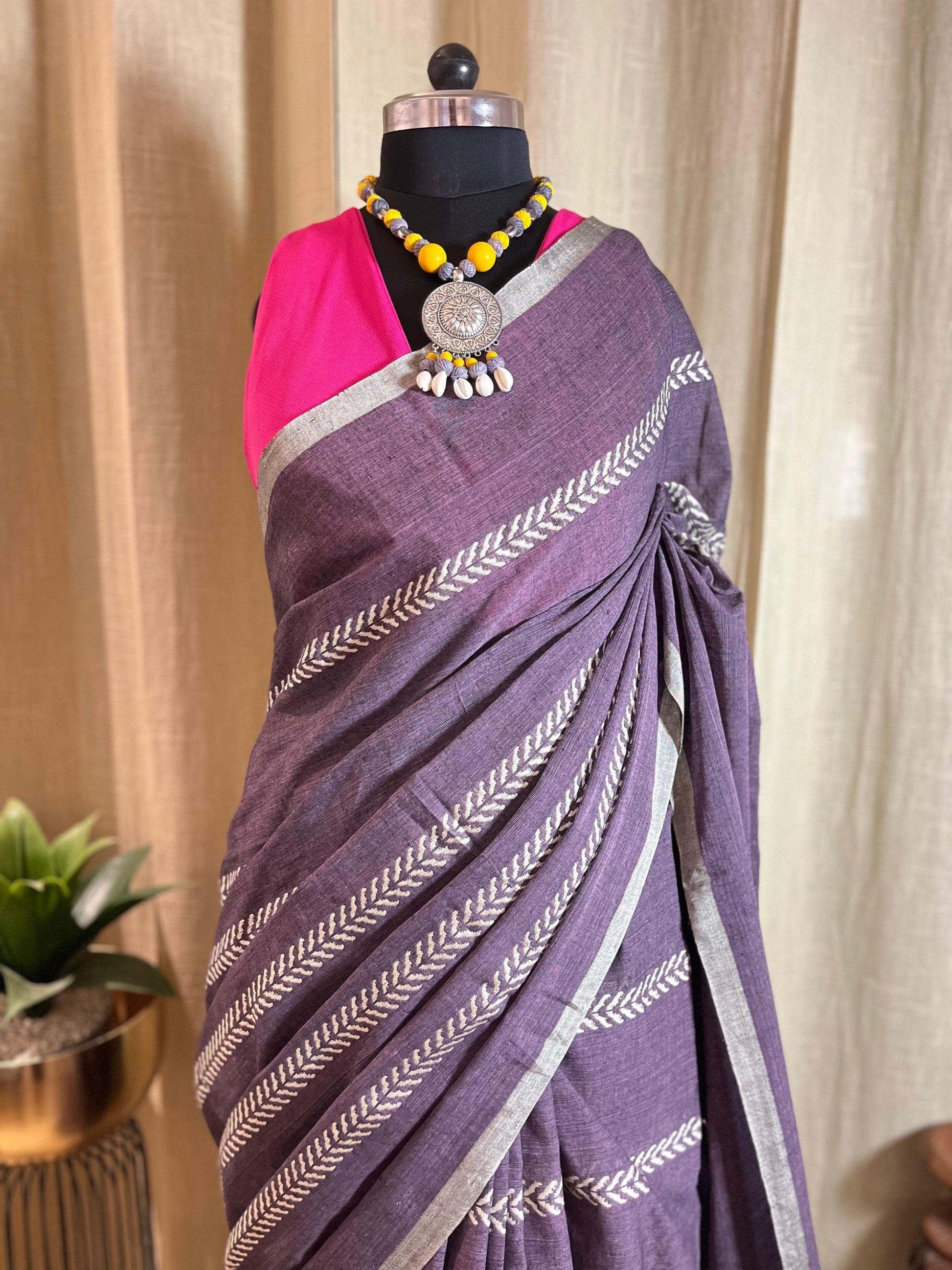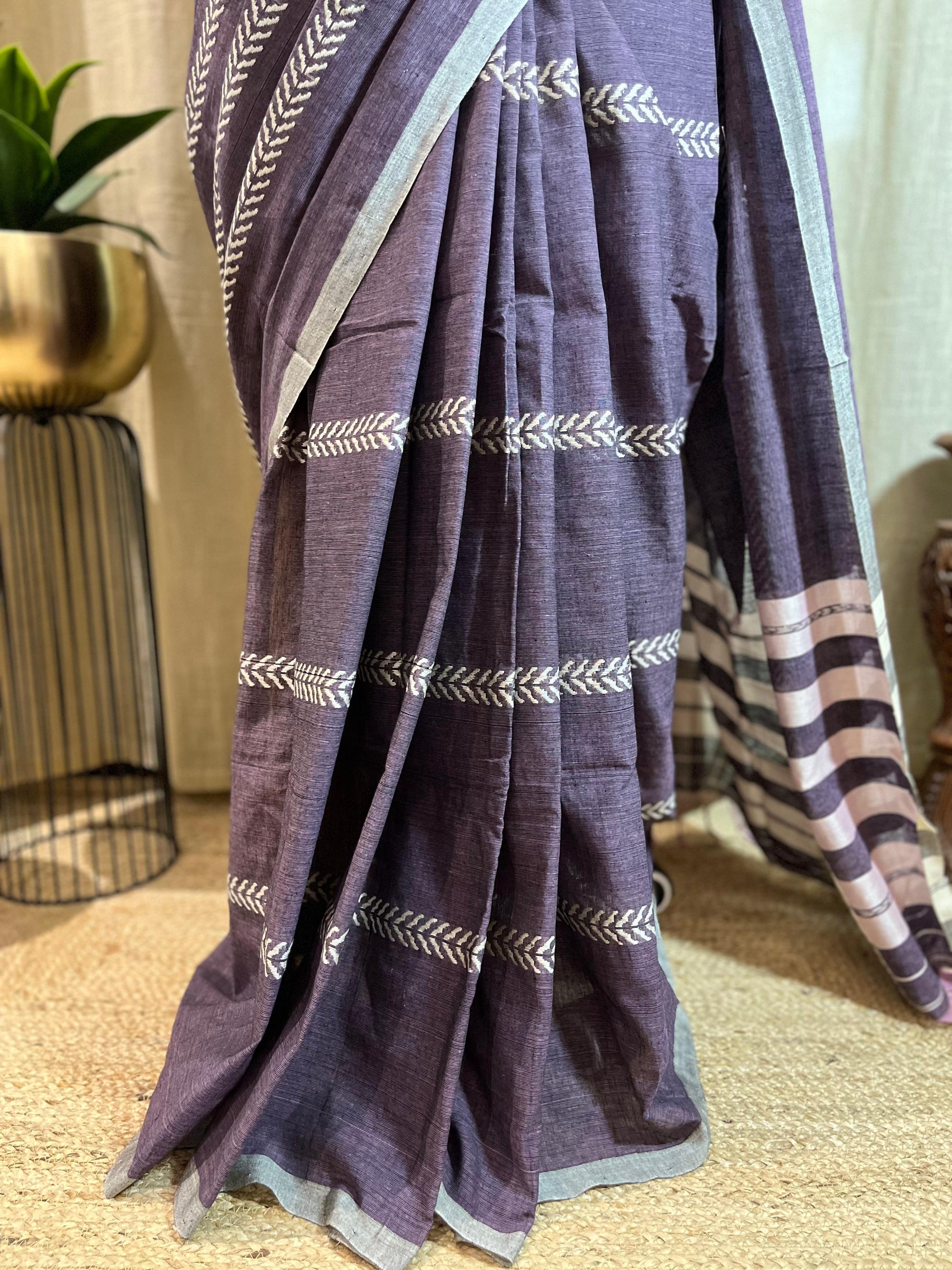 Lilac Lines | Cotton Saree