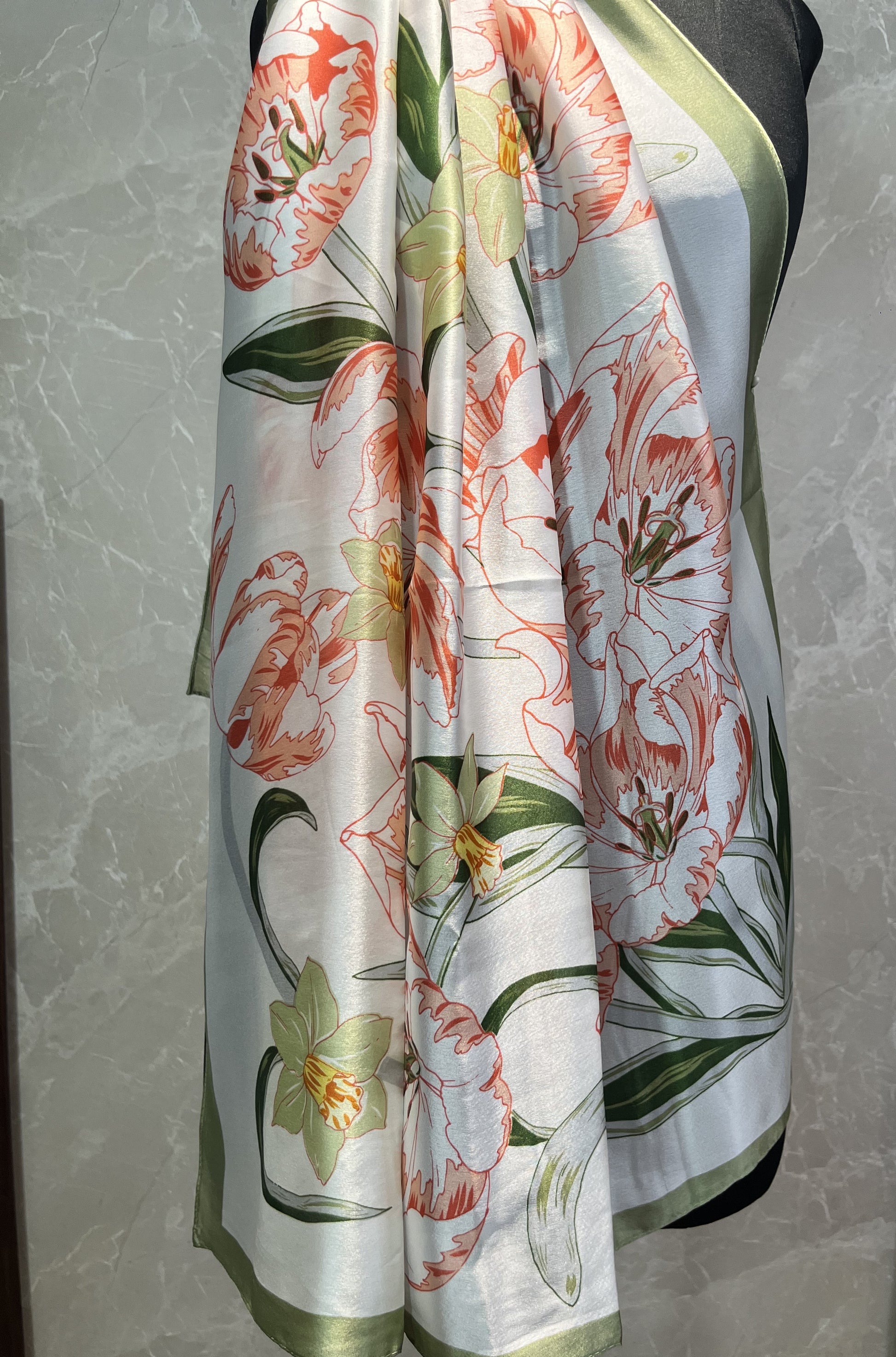 Meet your new styling essential - a printed silk blend scarf that whispers luxury with every drape. Satin-soft against your skin, it's the chameleon piece your closet has been waiting for. Pair it with indo-western fusion looks, ethereal boho dresses, sharp western tailoring, or sophisticated Indian formals. Effortlessly chic, undeniably luxe, infinitely versatile.